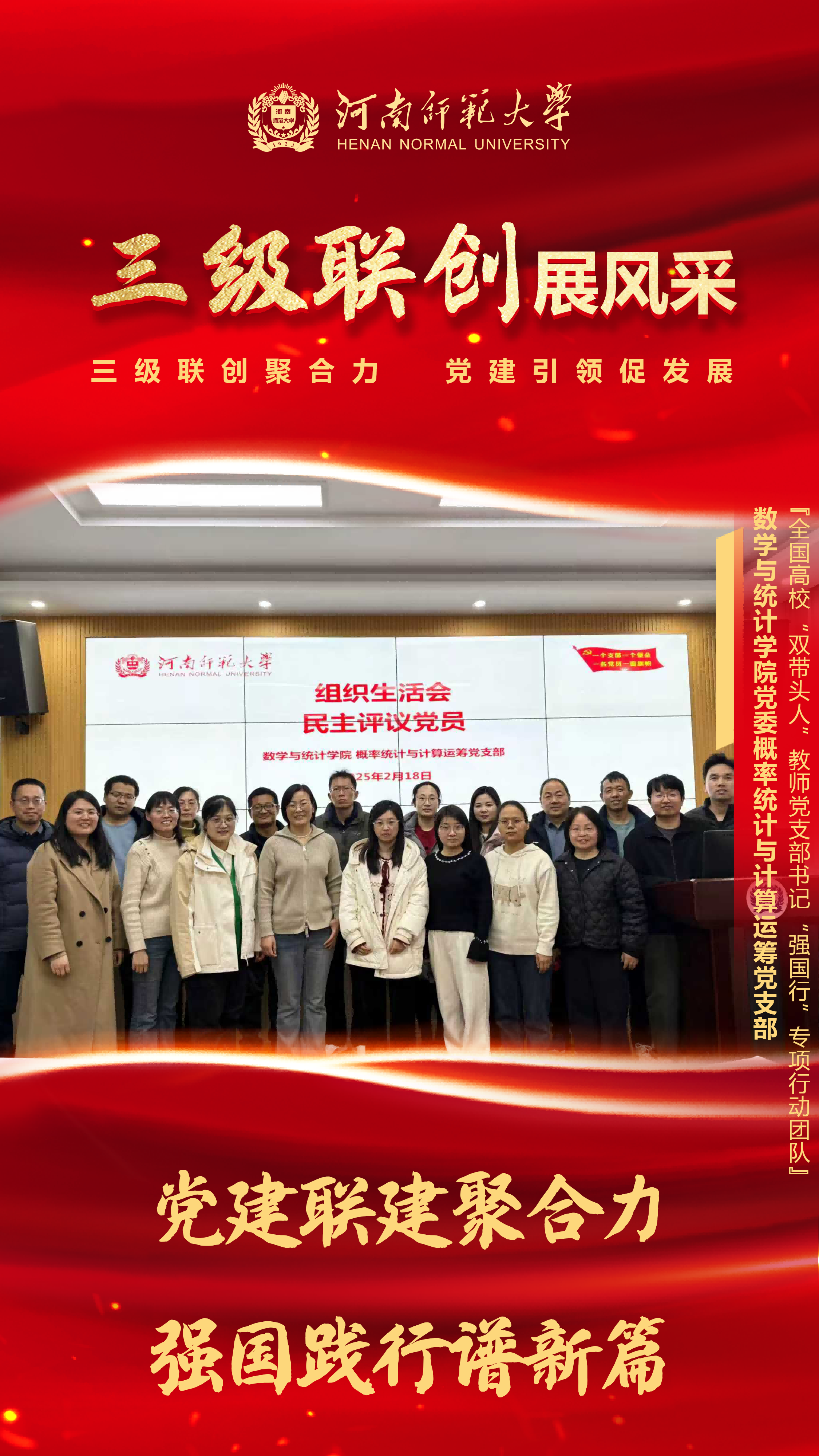数学与统计学院党委概率统计与计算运筹党支部积极围绕“强国行”专项行动,统筹部署项目行动周期内党建联建工作,深化支部与联建单位建立资源共享、优势互补和成果共研的工作机制,探索支部主导、联建赋能的实践路径。