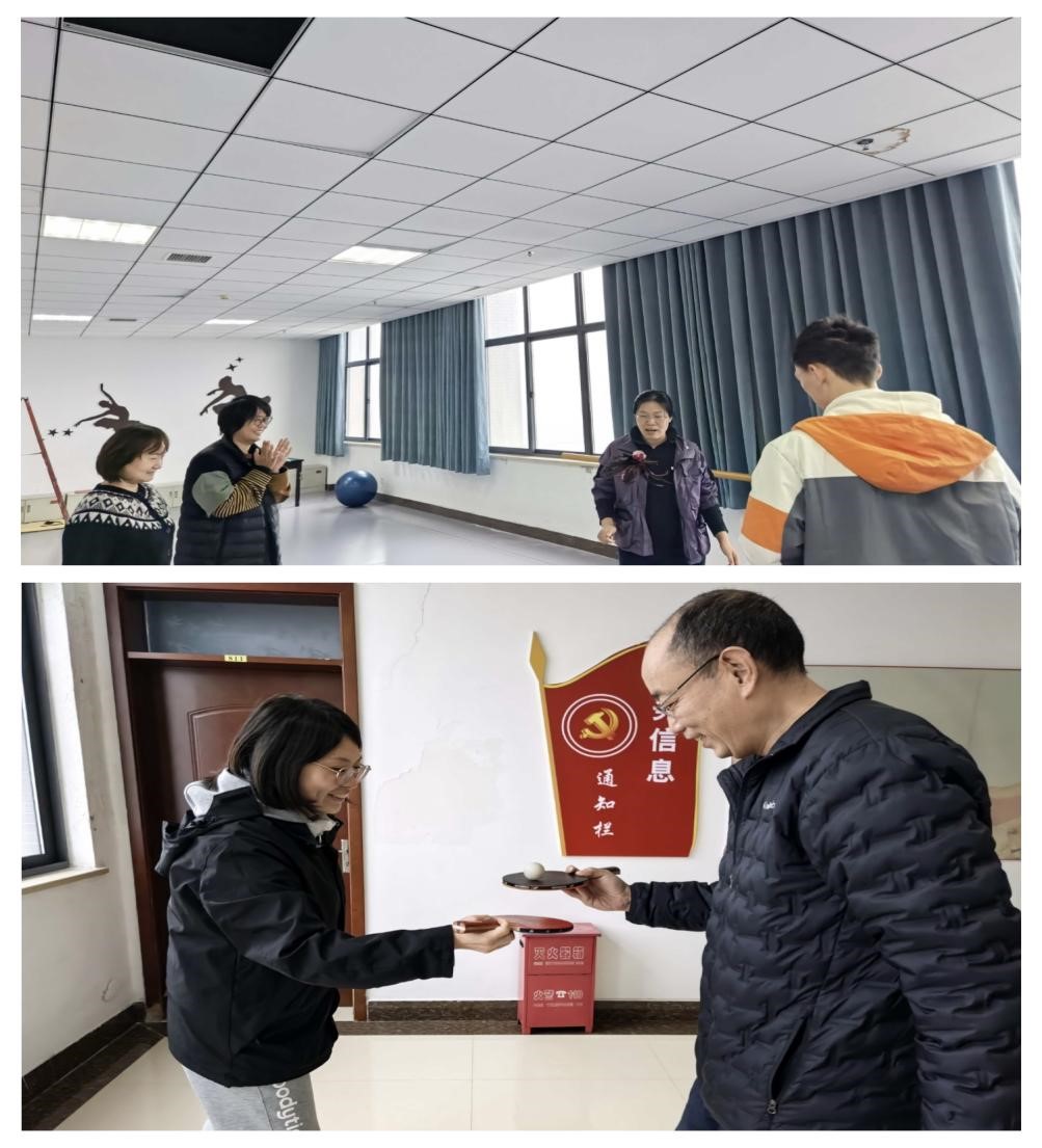 本次运动会设置了乒乓球托球接力、踢毽子和摸石头过河三项趣味赛事,这些项目不仅考验参赛者的个人体能与技巧,更强调了策略与团队合作的重要性,极大地提升了比赛的趣味性和互动性。在尤为紧张的乒乓球托球接力中,老师们个个屏息凝神,一边全力稳住球拍,一边小步快挪,生怕乒乓球掉落,此起彼伏的欢呼、加油与朗朗笑声交织一片,将现场气氛推向高潮。