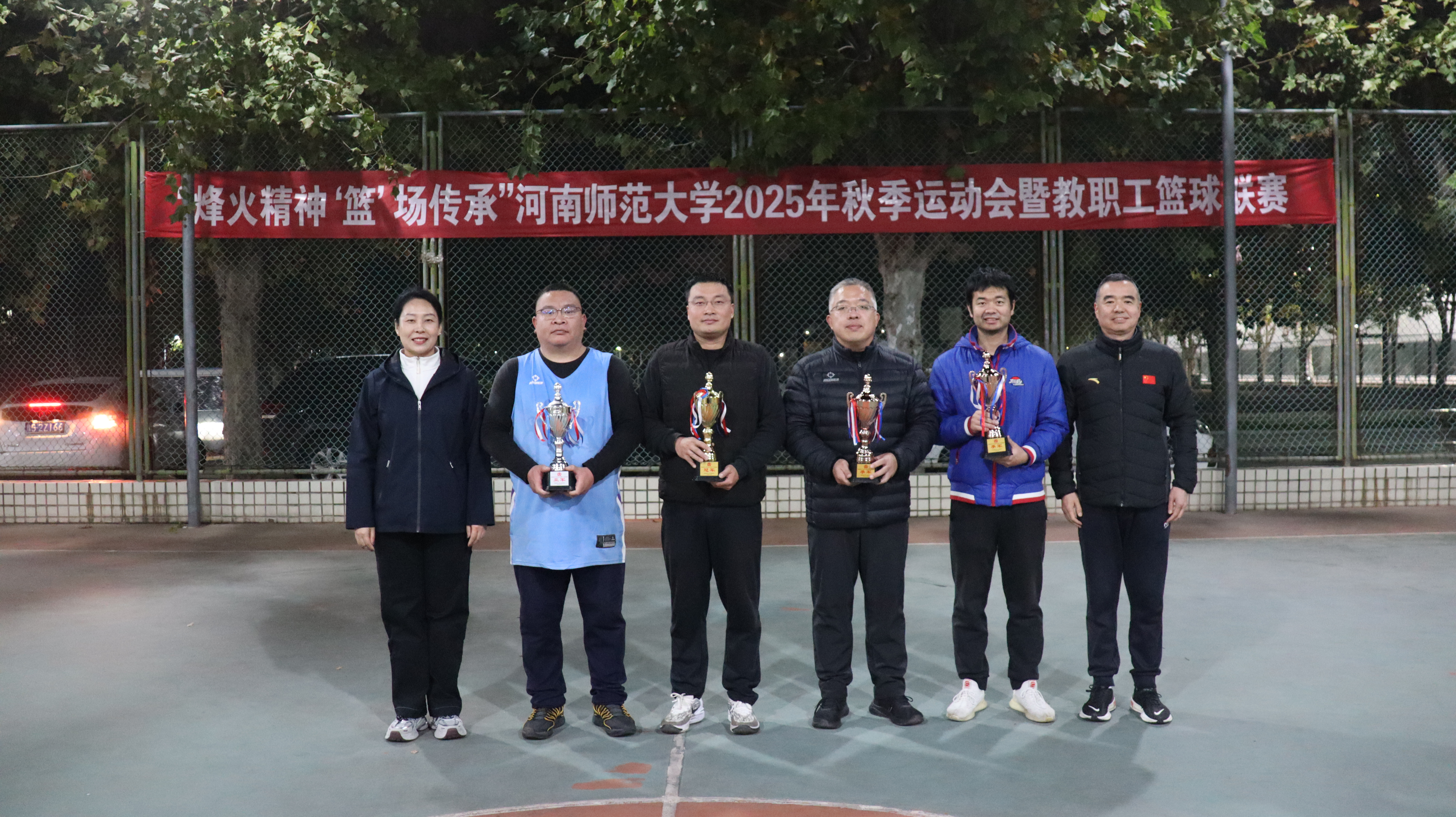 10月28日,为纪念抗日战争暨世界反法西斯战争胜利80周年,由校工会主办,体育学院承办,以“烽火精神 ‘篮’场传承”为主题的2025年教职工篮球联赛在西校区塑胶篮球场落下帷幕。校工会副主席王毅、体育学院副院长孟国正参加闭幕式并为获奖单位颁奖。