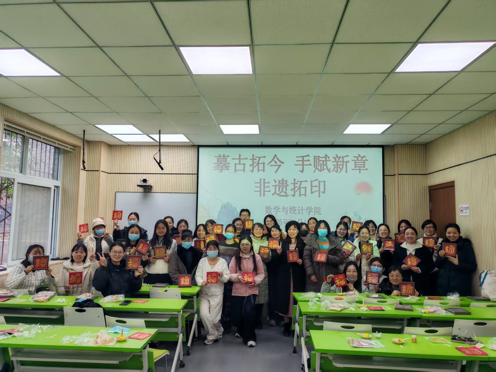 为丰富女性教职工文化生活,传承弘扬中华优秀传统文化,提升艺术修养与创造力,12月10日下午,数学与统计学院在数学南楼107室举办了“摹古拓今,手赋新章——非遗拓印创作沙龙”女工活动,全院女教师踊跃参与。