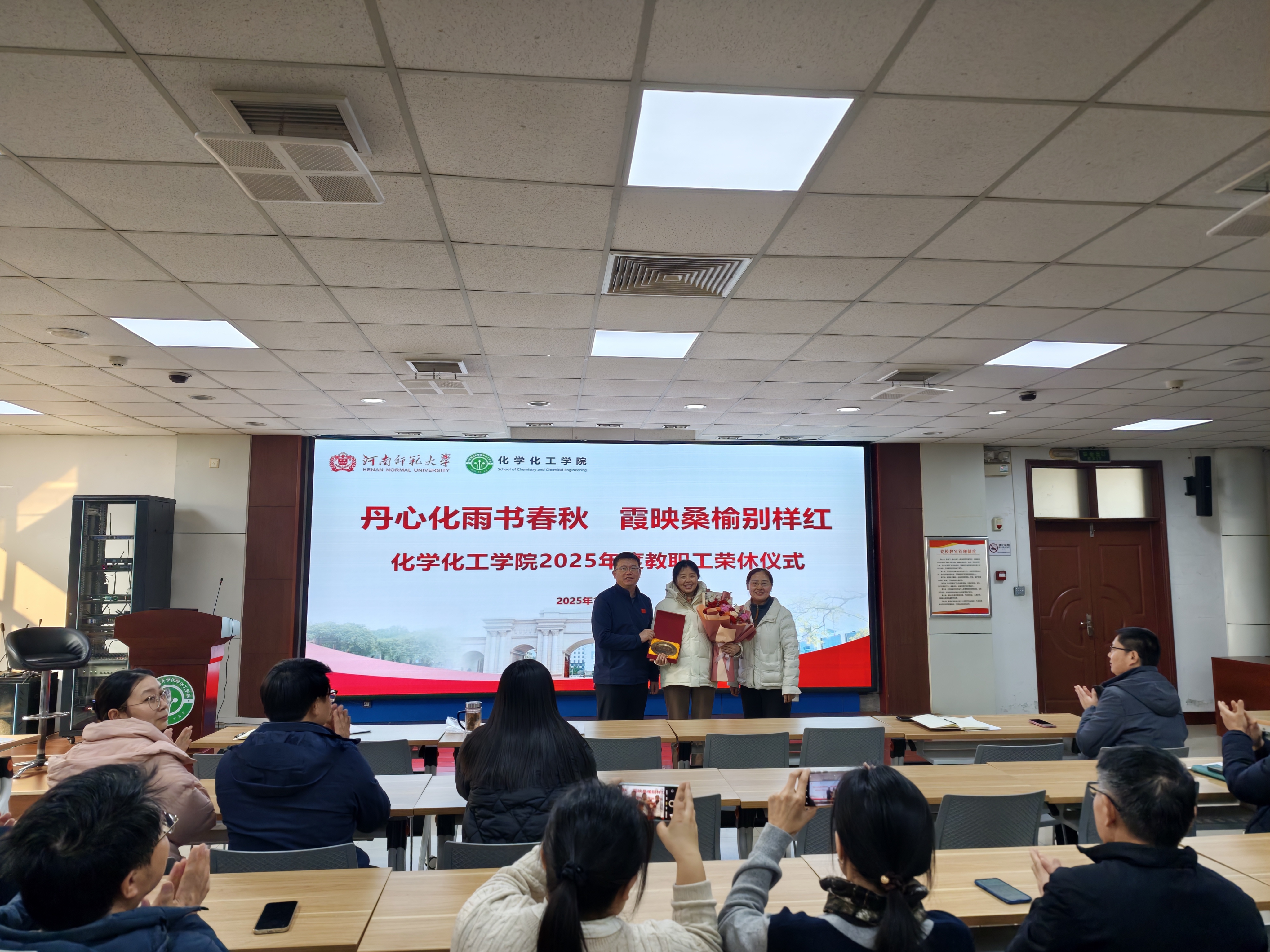 2025年12月16日下午,化学化工学院在化学北楼五楼会议室举办教师荣休仪式,学院党政领导及全体教师参加活动仪式,仪式由学院执行院长白正宇主持。