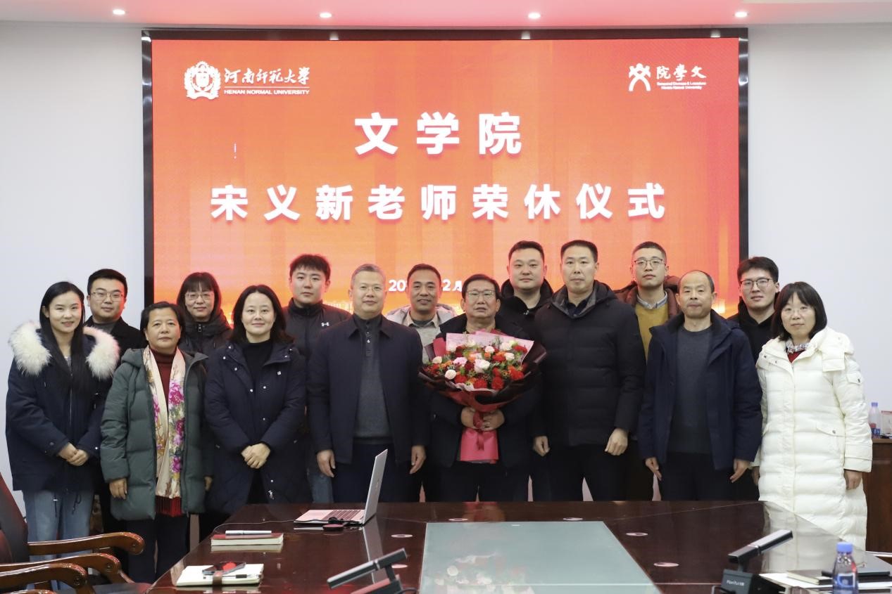 12月23日下午,文学院在崇文楼二楼会议室举行宋义新老师荣休仪式。学院党委书记孙昌松、院长陈鹏、班子成员及教师代表、政工人员等十余人出席。仪式由学院党委副书记张颜勇主持。