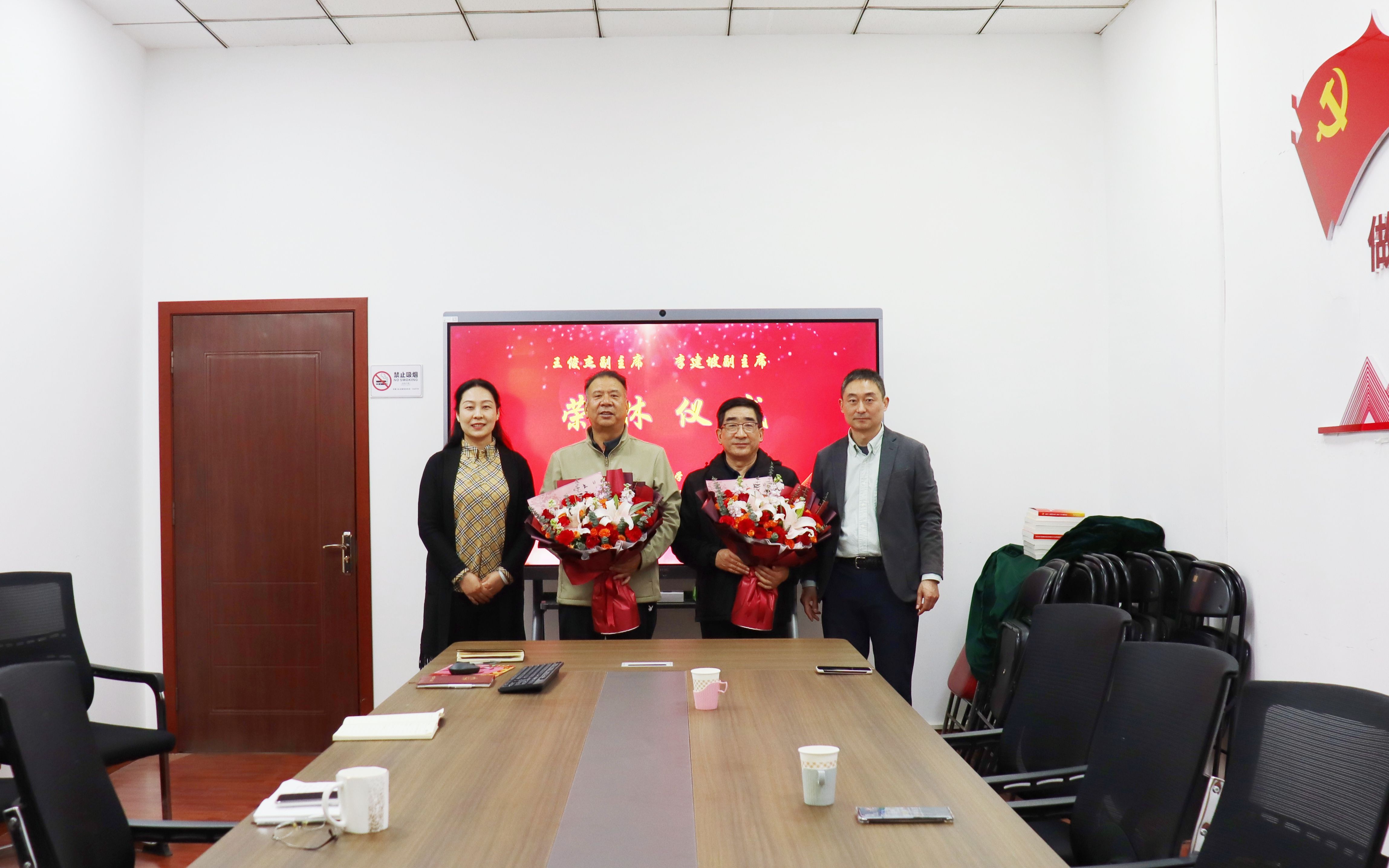 姜良代表校工会对王俊杰、李建坡两位领导在校工会工作的坚守与奉献表示感谢,对两位领导光荣退休表示真挚的祝福。希望两位领导退而不休,一如既往关注关心校工会发展,更希望两位领导在人生新的旅途上,不忘初心、牢记使命,安排好退休生活,保重身体,继续发挥余热、奉献社会!姜良、王毅代表校工会为王俊杰、李建坡两位同志送上了鲜花和祝福。