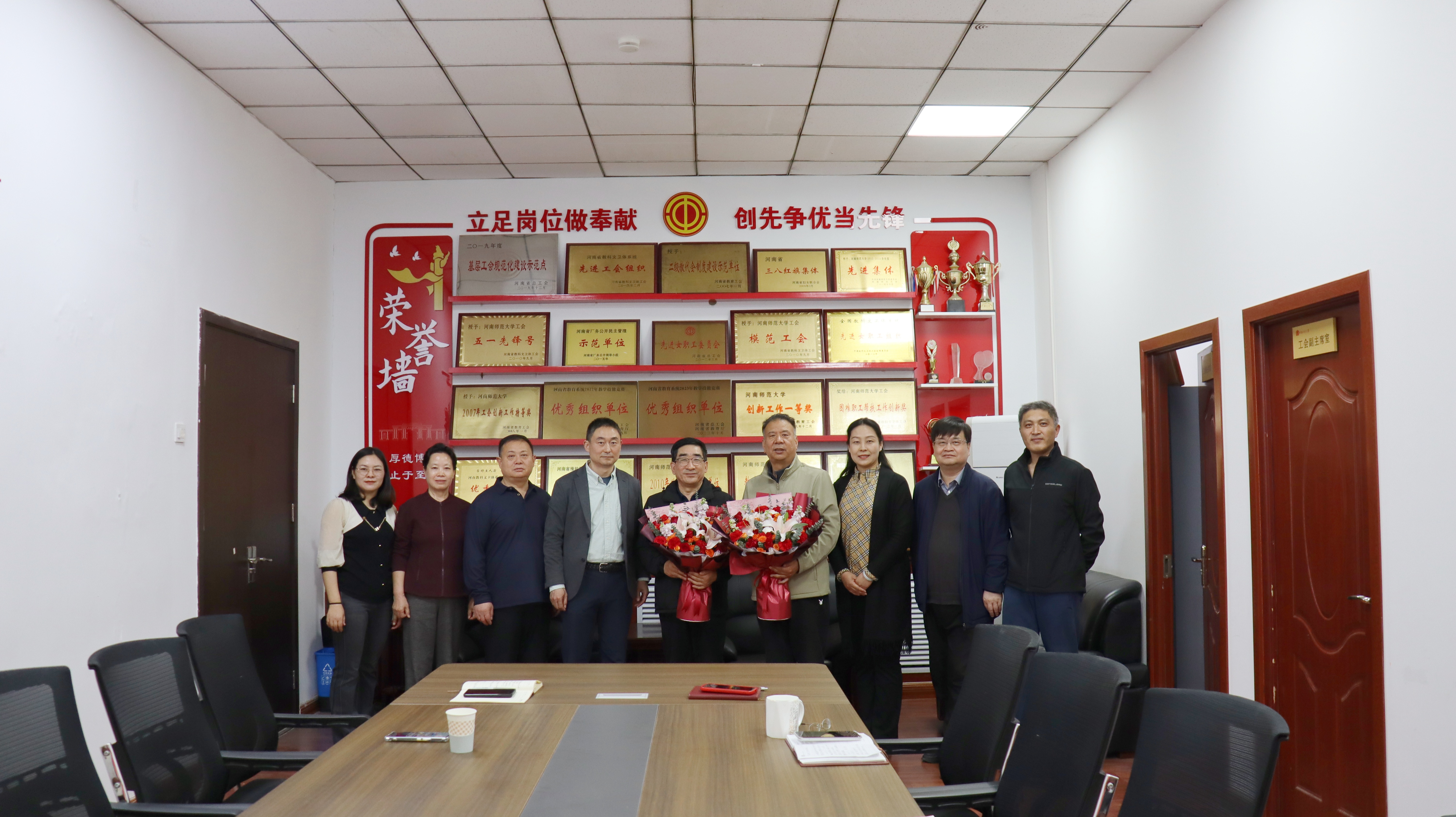 王俊杰、李建坡重温了在河南师范大学的工作生活,他们表示,感谢学校多年来的培养,感谢工会同仁们的支持,在以后的退休生活中将继续关注校工会工作,积极发挥余热、建言献策,支持工会工作发展。