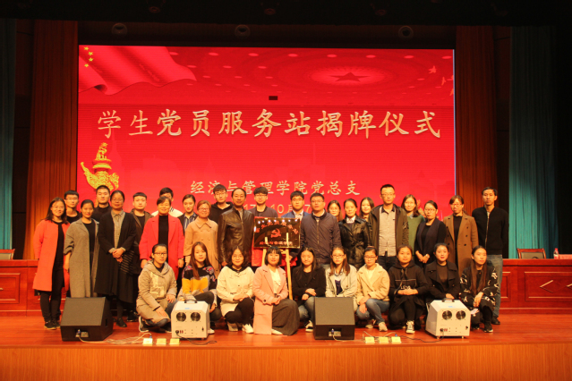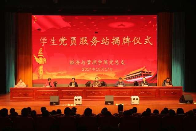 10月17日中午,经济与管理学院学生党员服务站揭牌仪式在多功能报告厅隆重举行。参加仪式的领导有院党委书记张永胜,副书记李浩以及党政办公室、党委宣传部、党委组织部和党委学工部相关领导。经济与管理学院全体教师、学生党员及2017级新生也参加了本次仪式,仪式由经管学院(系)党总支副书记赵明主持。