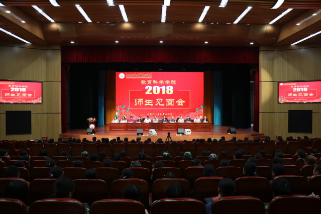 9月20日中午,教育科学学院师生齐聚一堂,在报告厅隆重举行2018级新生师生见面会。学院党委书记张永胜、院长金绪泽、党委副书记李浩、副院长王虎、党委宣传部、党委学生工作部、教务处、就业创业服务中心、心理健康教育与咨询中心、保卫部、团委等职能部门负责人出席见面会。典礼由院系副书记索岩主持。