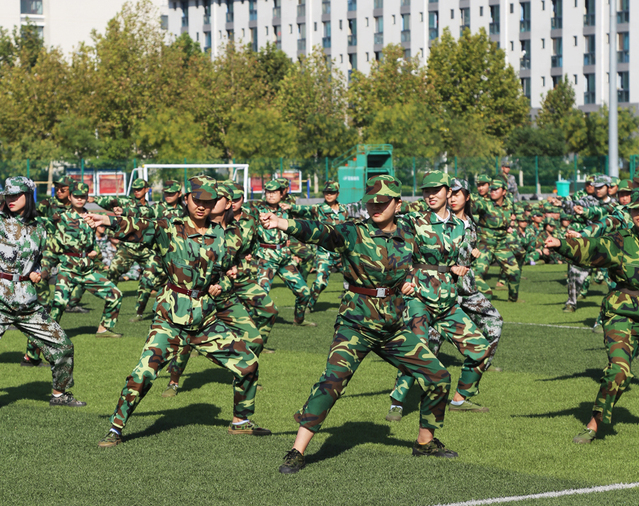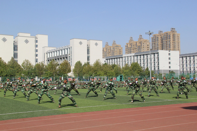 首先是学生军训分列式表演和军训科目汇报。新生们蓬勃的朝气和坚定的步伐展示出他们焕然一新的精神面貌,精彩的表演赢得了阵阵掌声。