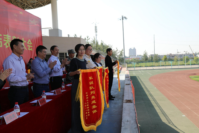 李浩宣读了《关于表彰河南师范大学新联学院2018级学生军训先进集体与个人的决定》,美术学、知识产权、人力资源管理等专业分别获得军训管理先进集体、军训队列先进集体等荣誉,王博儒等179名同学获得军训先进个人荣誉称号。随后举行了先进集体、先进个人的颁奖仪式。
