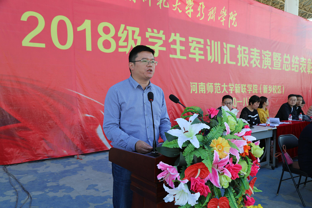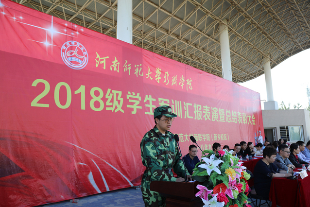军训营营长王增胜代表全体教官讲话,他指出通过军训磨炼了广大同学们的意志,使广大同学们养成了良好的习惯,增强了责任意识和集体荣誉感,凝练了积极向上的军训精神,并希望同学们在今后的生活和学习中继续坚持和发扬光大,做德智体美全面发展的优秀学生。