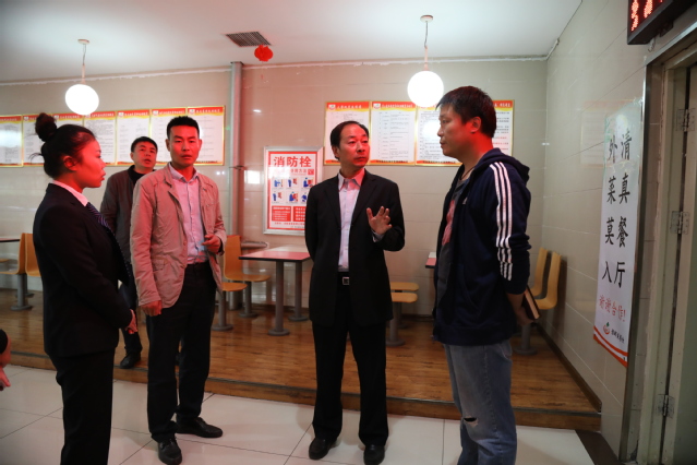 10月16日下午,新联学院党委书记张永胜、党委副书记李浩、副院长宋京双在党委组织(统战)部、综合管理办公室综合科、餐饮中心、经营中心等相关部门负责人的陪同下,深入到后勤一线检查指导工作。
