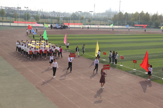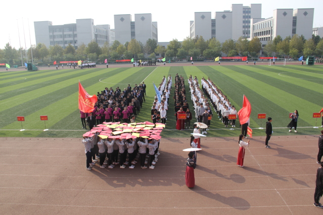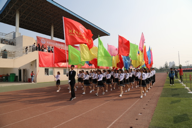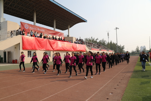 运动场上彩旗飘扬,《运动员进行曲》高亢嘹亮。国旗护卫队、新联学院院旗、彩旗方队迈着矫健的步伐进入开幕式会场,精神饱满、庄严肃穆。教职工代表队、各院系各专业代表队意气风发地依次从主席台前走过,每个代表队都创意迭出,进行了别开生面的入场式表演,口号嘹亮、气宇轩昂,生动形象地诠释了奥运精神,展现了新联学院师生积极进取、斗志昂扬的精神风貌。