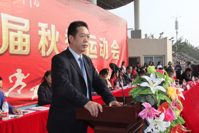 金绪泽致开幕词,他指出,运动会是学院贯彻落实党和国家教育方针及国家“全民健身,健康中国”发展战略的具体体现,是全院师生精神面貌的一次集中展示,希望全体运动员在展示公平竞技的同时,充分发挥“更高、更快、更强”的奥林匹克精神,顽强拼搏、勇于挑战,赛出成绩、赛出风格、赛出友谊,不断创造运动场上的新辉煌,展现出我们新联学子的精神风貌和新联人的道德风尚。