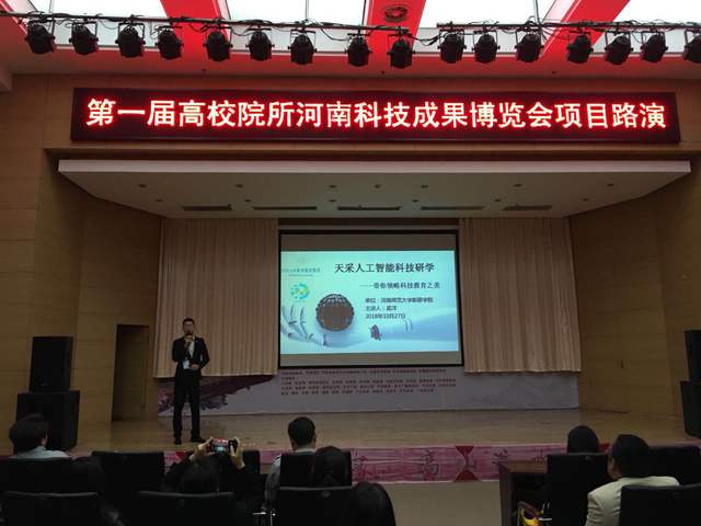 10月25日—27日,新联学院副院长张长伟一行5人参加了“第一届高校院所河南科技成果博览会”。新联学院大学生人工智能科教创业团队项目参加了大会成果展示。