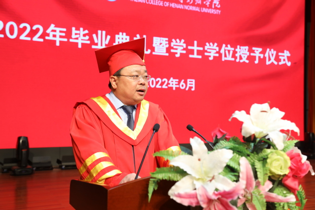 不忘初心,乘风破浪,新联学子,扬帆远航。6月1日,河南师范大学新联学院2022年毕业典礼暨学士学位授予仪式在多功能报告厅隆重举行。学院党政领导李浩、张长伟、王虎、卢海燕及各部门负责人、各院系党总支书记、毕业班辅导员出席典礼,与2022届毕业生代表共同见证这一难忘而美好的时刻。仪式由新联学院副院长王虎主持。