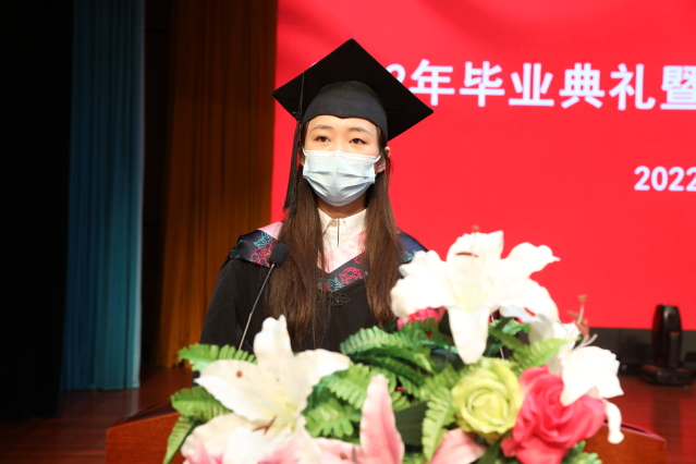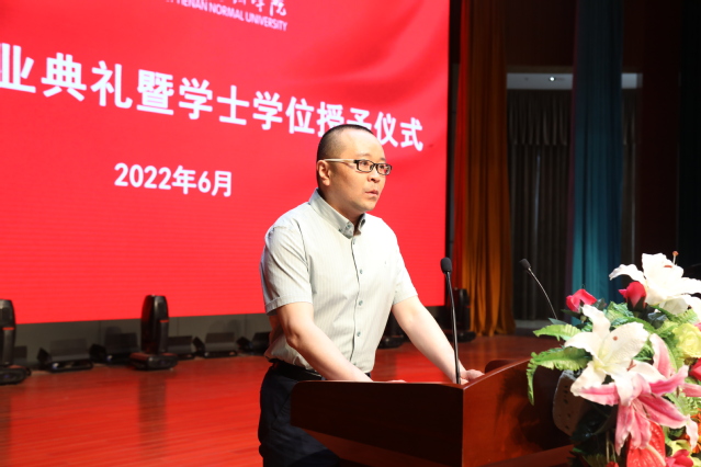 教育科学学院党总支书记刘擎作为教师代表鼓励学生树立终身学习的理念,刻苦努力,坚持不懈,不断迈上学识的新台阶,不断攀登人生新高度。2018级英语专业刘玉静同学作为毕业生代表表达了对母校及恩师的感恩、眷恋和依依惜别之情。