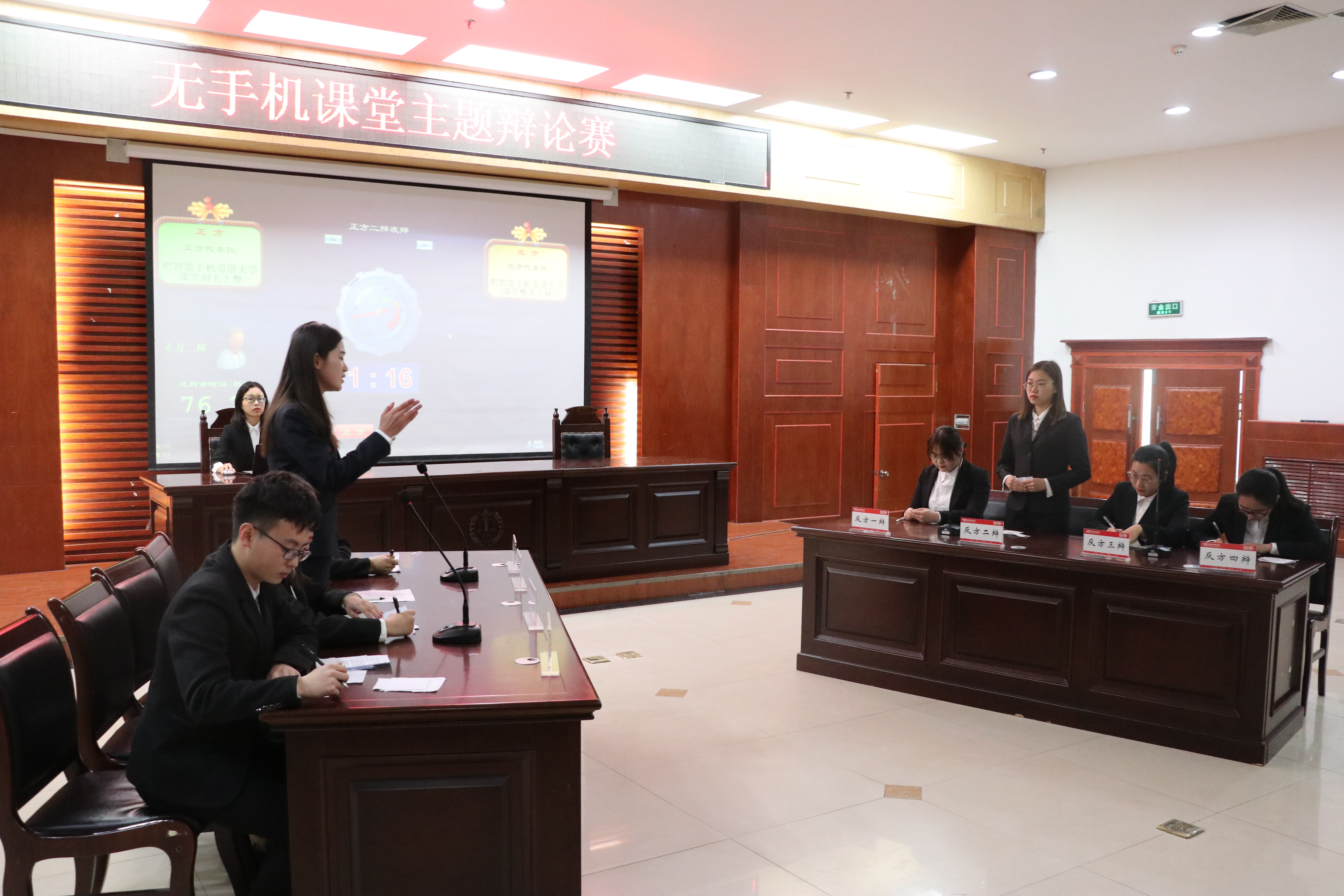 为响应学校无手机课堂的号召,加强院系学风建设,3月30日下午,由法学院辩论队举办的“无手机课堂主题辩论赛”在模拟法庭举行,2018级部分同学参加活动。