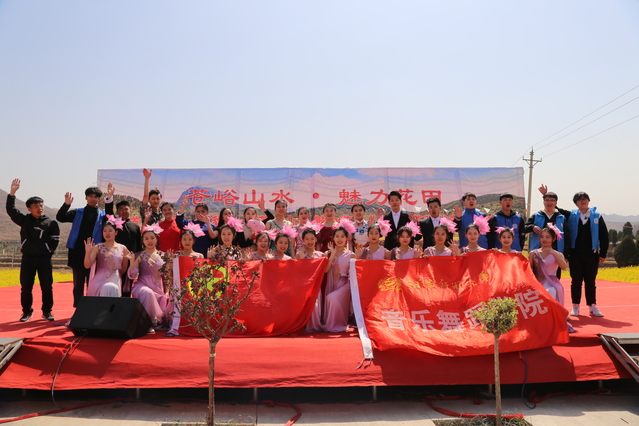 为深入学习贯彻习近平新时代中国特色社会主义思想,贯彻落实习近平总书记参加河南代表团审议会议讲话精神,助力河南打赢脱贫攻坚战,3月30日上午,音乐舞蹈学院团委精心策划、系统筹备的专场文艺演出在“苍峪山水·魅力花田”卫辉市狮豹头乡首届油菜花观赏节中精彩亮相。
