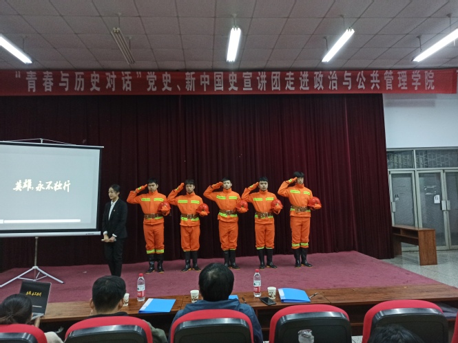 活动以历史英雄故事宣讲形式展开,共有《三个选择》、《流淌的记忆》、《小岗村的红手印》和《英雄,永不独行》四组宣讲团队依次展示,为观众带来一场视听盛宴。其中,由未来学院团队带来的《三个选择》,精彩演绎王杰青年应征入伍、不愿耽误未婚妻而不婚、为掩护同伴而牺牲的三个选择,充分展现出王杰同志献身革命、舍小家为大家的崇高精神和家国情怀。政治与公共管理学院团队则以消防战士为切入点,重现消防员面对凉山火灾时的英勇无畏和舍生忘死,展现出英雄不过是普通人拥有着一颗伟大的心,号召当代青年向英雄致敬,为英雄点赞。舞台上讲述的故事感染了在场观众,赢得阵阵掌声。