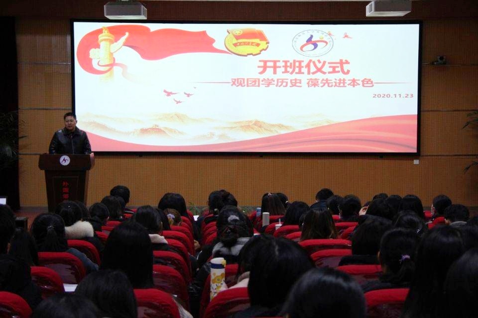 为深入学习贯彻习近平总书记在中央党校青年干部培训班上发表的重要讲话精神,增强广大团干的凝聚力和向心力,从而全面提升共青团干部的整体素质,11月23日晚,外国语学院团委于外院报告厅开展2020-2021学年第一期基层团干团务工作培训。院党委副书记曹崇、院团委负责人张良,团委学生会全体成员以及各年级青年团干共百余人参与本次培训。