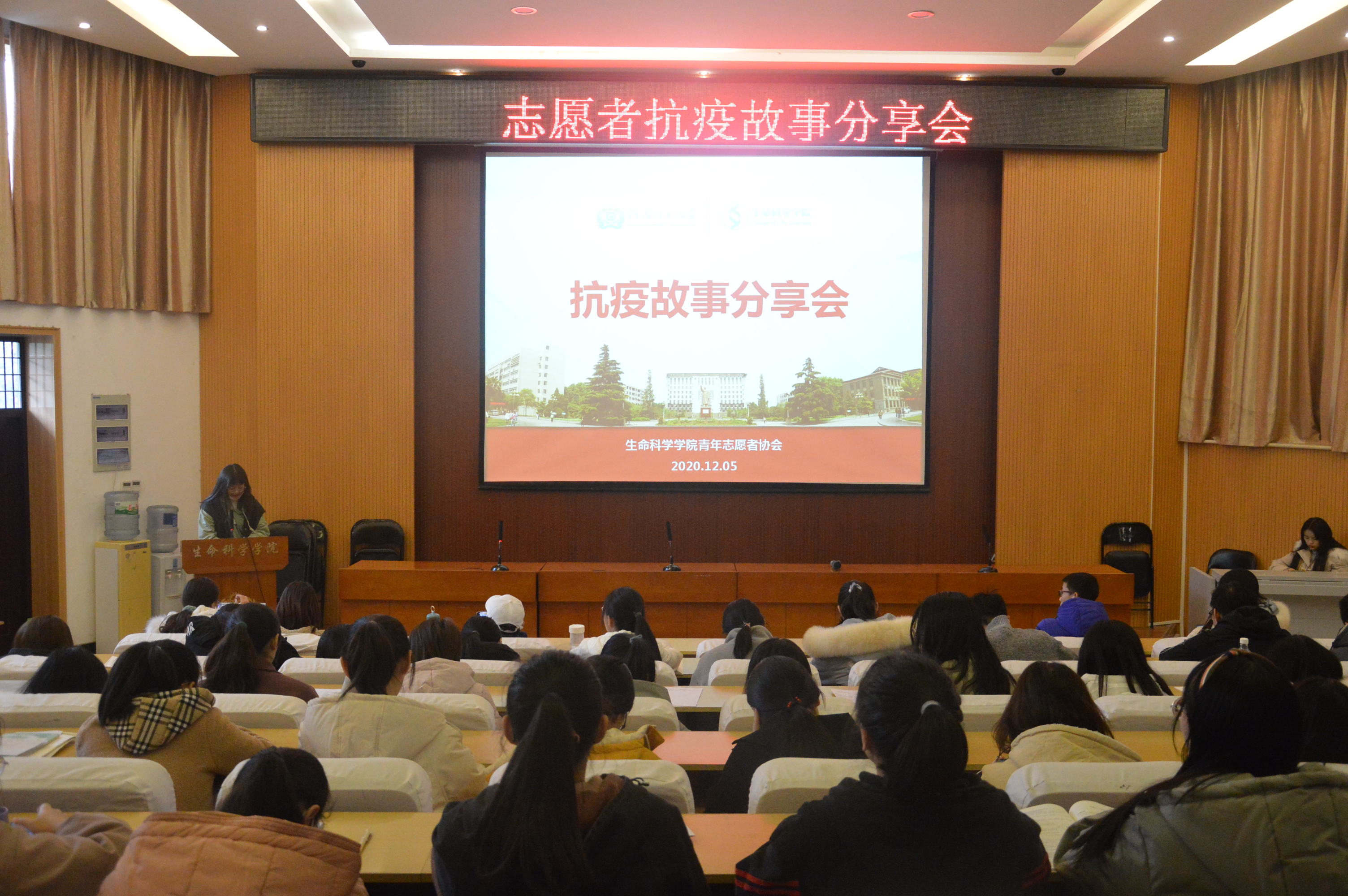 12月5日下午,生命科学学院在生物报告厅举行抗疫志愿者故事分享会,召集疫情期间参与防控的志愿者,讲述他们在疫情中所做的志愿活动。会上,2018级生物科学专业邓雍辉讲述了自己在疫情期间参加青年志愿者疫情防控应急志愿服务及高考线上义务志愿辅导的经历,他分享道:“乌云遮不住升起的太阳,疫情挡不住春天的来临,希望我们在今后的学习生活中都够践行守望相助、奉献利他、同舟共济的价值理念,弘扬‘奉献、友爱、互助、进步’的志愿精神,以青春之我,创建青春之国家,青春之民族”,在场学生深受感动,报以雷鸣般的掌声,身边的榜样精神得到了充分发挥。