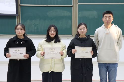 汤润民开场致辞,会议开始。首先,栗艳丽针对四六级考试进行经验分享,强调了四六级考试的重要性并分享宝贵的备考经验。接着,杨玉君针对期末复习从对待考试的态度、考试成绩的重要性、考试技巧三方面进行讲话。她强调了诚信考试的重要性,希望同学们做好规划,全力以赴备考并取得理想的成绩。颁奖环节,杨玉君宣读在年级“手握笔杆·你追我赶”和“崇正道·尚团结”工作中表现突出的先进个人、集体名单,与会老师为受表彰学生颁发荣誉证书及奖品。接着,汤润民针对“大学生职业生涯规划”进行指导。以“生涯是什么”、“生涯规划是什么”等问题,引入话题,介绍了规划自己职业生涯的方法,强调了“以终为始,设定阶段目标”的重要性,并建议同学们认清自我、明确目标。最后,许荷欢和崔远涛分别结合自身经历分享经验,希望同学们带着一颗诚挚的心,立志高远、始于足下,多年后回想自己的大学时光不会因虚度光阴而悔恨。
