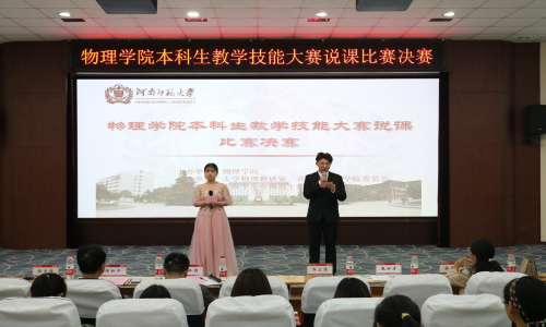 一支粉笔书写激扬青春,三尺讲台尽展学子风采。为帮助学生提高教学技能、积累教学经验,提升学生师范专业素养和教学实践能力,5月16日上午,物理学院在北楼三楼报告厅举办本科生教学技能大赛说课比赛决赛。物理学院副院长夏从新,河南师范大学附属中学实验部副主任、河南省教学技能大赛一等奖获得者郭卫强,新乡市一中初中部理综教研组长、河南省优质课大赛一等奖获得者原五庆,学院物理学科教学研究所侯新杰,物理学科教学研究所所长陈运保,物理学科教育研究所杜爱慧,大学物理教研室主任张计才,学院团委书记、卓越教师培养实验班班主任王丹云参加比赛并担任评委。本次大赛由物理学院主办,大学物理教研室和学院团委共同承办,学生会师范生技能工作部协办。卓越教师培养实验班全体学生、各年级师范专业学生代表360余人观摩了比赛。