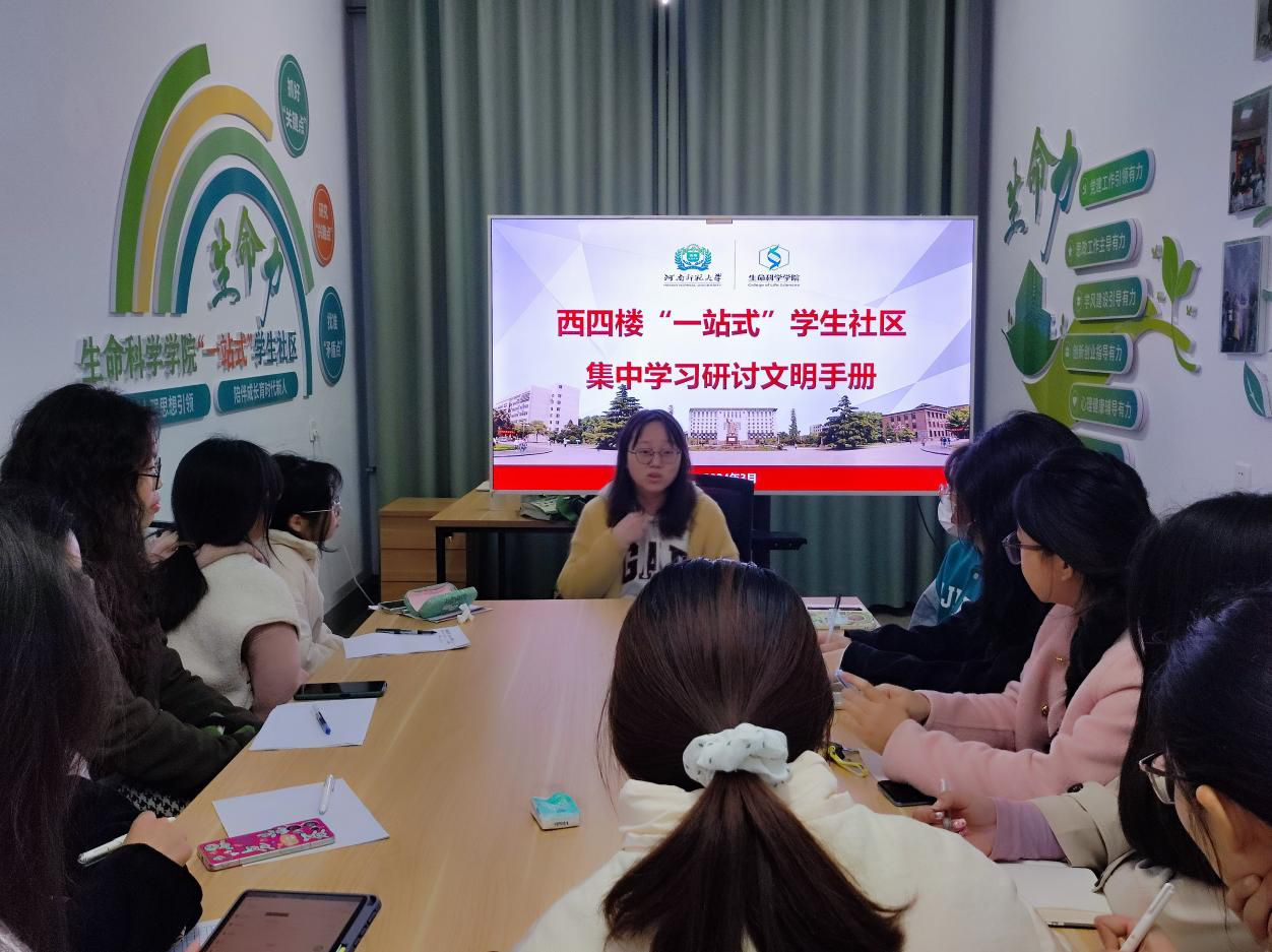 为着力培育和践行社会主义核心价值观,加强和改进青年学子思想道德建设,提升大学生文明素养和校园文明程度,推进文明培育、文明实践、文明创建,3月25日晚,生命科学学院“一站式”学生社区开展文明手册学习研讨会,2021级兼职辅导员梁依及学生代表参与此次研讨会。