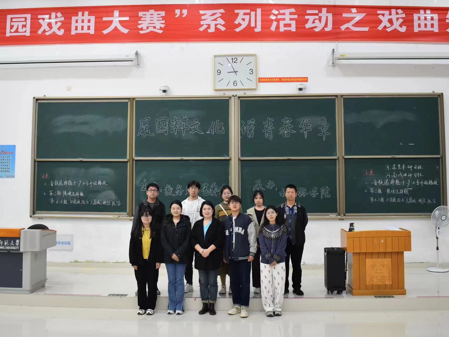 为贯彻落实教育部关于“大力推进高雅艺术、传统戏曲进校园”的工作要求,推动学校美育工作发展,将戏曲艺术融入校园文化。3月30日晚,由教务处、艺术教育委员会主办,旅游学院承办的“展国粹文化,谱青春华章”河南师范大学第三届校园戏曲大赛系列活动之知识竞赛在文昌楼102教室成功举办。河南师范大学艺术教育委员会赵畅莅临指导。
