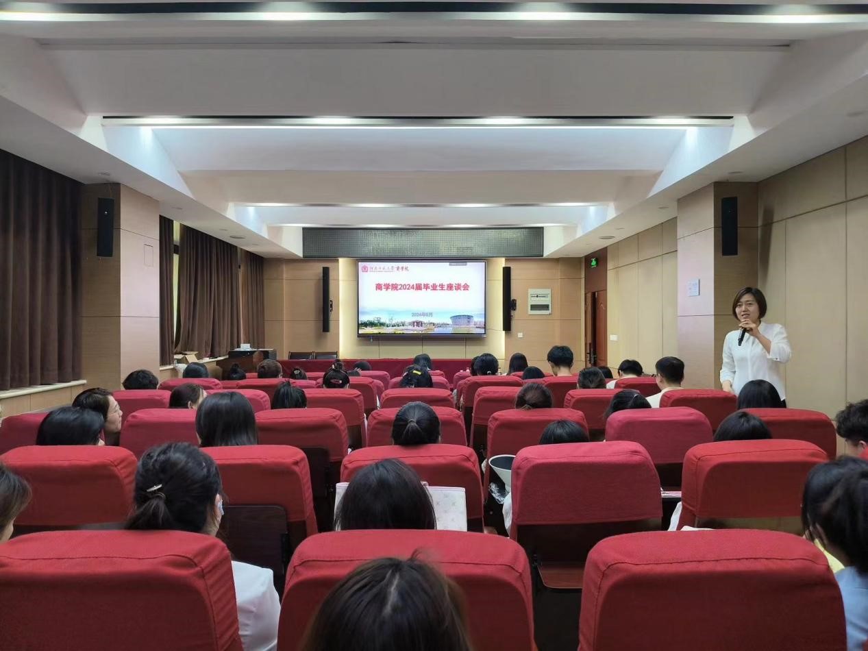 为明晰毕业生发展规划困惑,深入洞察毕业生升学就业现状,5月23日下午,商学院于学院119报告厅召开2024届毕业生座谈会。商学院党委副书记马淑明、2020级辅导员赵玮、学院教师代表以及2024届毕业生代表参加本次座谈会。会议由马淑明主持。
