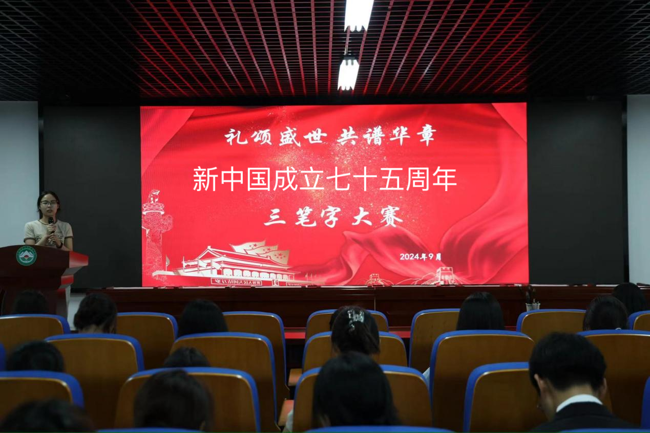 为庆祝新中国成立七十五周年,弘扬中华优秀传统文化,激发环境学子的爱国情怀和文化自信,环境学院于9月28日在实训楼1509举办了“礼颂盛世,共谱华章”三笔字大赛。