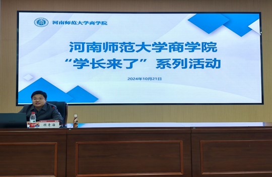 为拓展学生就业空间,帮助学生精准把握就业形势,明确职业目标与规划,10月21日下午,商学院于道德讲堂举行“学长来了”系列活动。本次活动诚邀我校优秀毕业生校友、现通用技术集团国际物流有限公司华中区副总监顾青海作为主讲。商学院团委副书记郭琛昊、2024级专职辅导员孟孝文、2024 级兼职辅导员房希斌及部分学生代表参加本次活动。