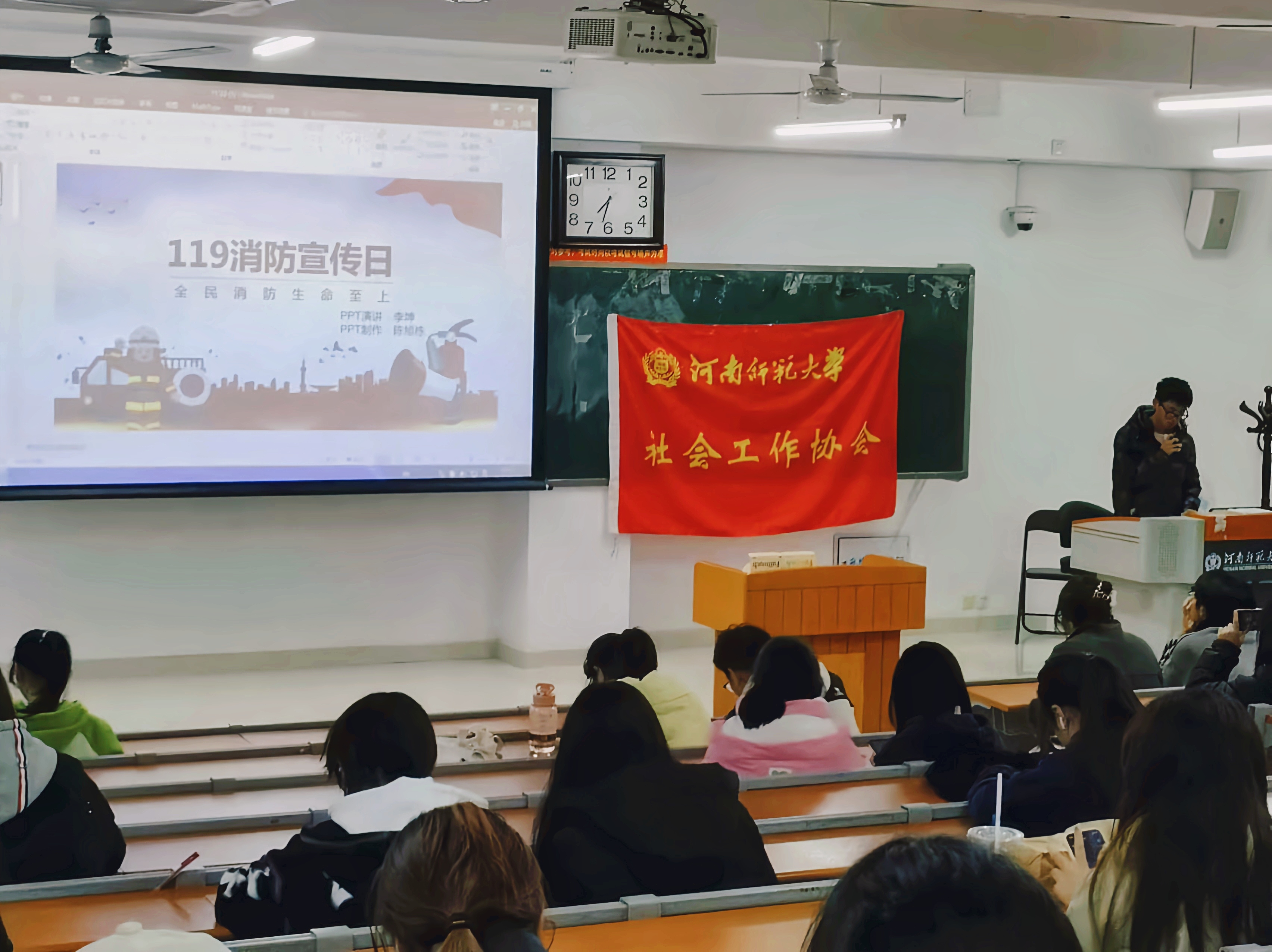 此次活动主要以主题讲座形式开展,同学们全身心投入消防安全主题活动各环节。在主持人讲解消防安全的重要性时,一个个真实的案例清晰地展现出火灾的可怕,让大家深刻认识到消防安全至关重要,要牢固树立安全意识。互动环节中,与会人员纷纷积极踊跃参与讨论。每一次提问与回答都是知识的交流碰撞,让大家对消防安全的认识更加深入。在播放消防安全主题宣传视频时,一幅幅生动的画面真实再现了火灾场景,影片中火势的凶猛、人们的慌乱、消防员的英勇无畏,让同学们的情绪随之起伏,或紧张、或感动,心中的消防安全意识也更加牢固,深刻认识到消防安全与日常生活的紧密联系,纷纷表示会牢记消防知识和技能,同时坚定了为校园消防安全贡献力量的决心。