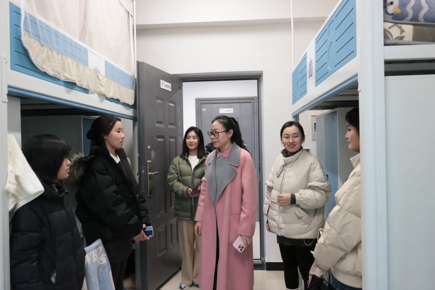 在新生宿舍,王芳与同学们亲切交谈,细致询问入学以来的生活适应情况、课程学业进展以及未来发展规划,叮嘱大家注意天气变化,做好防寒保暖,特别强调了宿舍用电等消防安全问题。同学们也积极分享入学以来的收获与困惑,王芳对大家展现出的昂扬精神面貌予以充分肯定,鼓励大家夯实专业基础,力争全面发展。