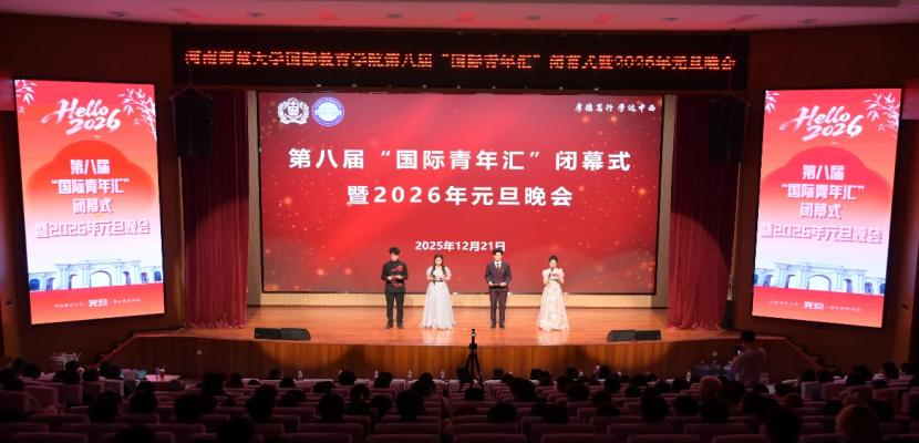 岁末欢歌送旧年,新元笑语启华章。12月21日晚,以“立报国强国大志向,做挺膺担当奋斗者”为主题的国际教育学院第八届“国际青年汇”闭幕式暨2026年元旦晚会在河师大附中道德讲堂成功举行,院微信官方平台同步直播。学校党委学工部部长葛照金、团委书记王秀杰、宣传部副部长马淑明、佩皮尼昂国际理工学院党总支书记白丽、学院领导班子成员、中外方教师代表及四百余名中外学子欢聚一堂,共赏文化盛宴。