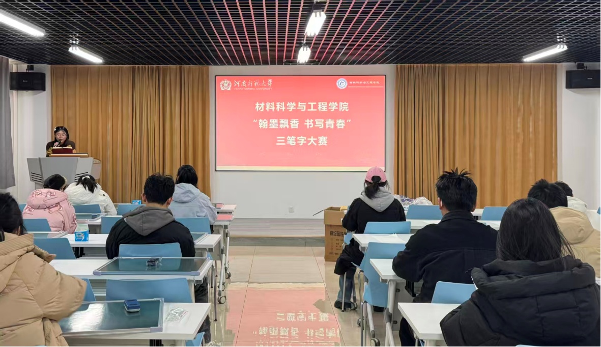 为传承中华优秀书法文化,提升学生书写技能与审美素养,12月21日,材料科学与工程学院在实训楼1113教室举办“笔墨书青春,‘材’情满校园”三笔字大赛。本次活动共吸引40余名学生参加。
