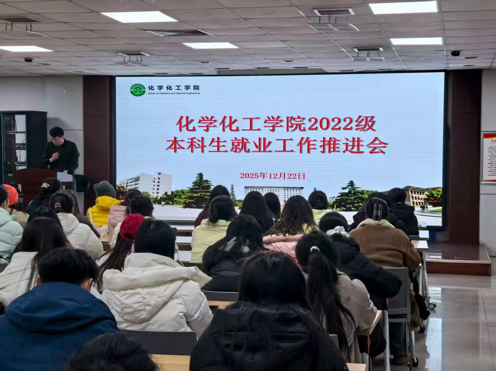 为切实做好2022级本科生就业推进工作,精准对接毕业生就业需求、助力学子明晰就业方向,12月22日下午,化学化工学院2022级本科生年级于化学北楼五楼会议室召开就业工作推进会。本次会议由2022级辅导员曹锟主讲,全体专职辅导员及2022级全体本科生参会。