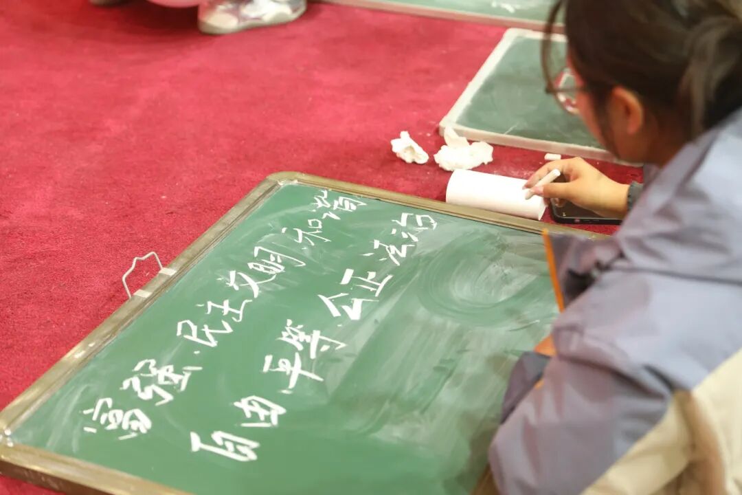本次比赛突破传统单一项目局限,设置钢笔、毛笔、粉笔三大书写项目,全方位检验选手的书写素养。钢笔书写区,同学们凝神静气,笔尖在纸面轻盈游走,字迹工整秀丽,笔画间尽显对汉字艺术的细腻感悟;毛笔创作区,墨香氤氲中,选手们执笔挥毫,或楷法端庄,或行书流畅,笔锋转折间展现出对传统书法技艺的熟练掌握;粉笔板书区,同学们手持粉笔,在黑板上精心布局,字迹清晰有力,一笔一画勾勒出未来课堂板书的雏形,传递着对教育事业的责任与担当。比赛结束后,评委老师从笔法、结构、章法等多个维度,对参赛作品进行了公平、公正、公开地评选。评委老师们充分肯定了同学们的作品,并针对书写过程中存在的问题提出了宝贵建议。老师鼓励大家在今后的学习生活中,持续提升书写水平,厚植师范生专业技能,传承博大精深的汉字文化。