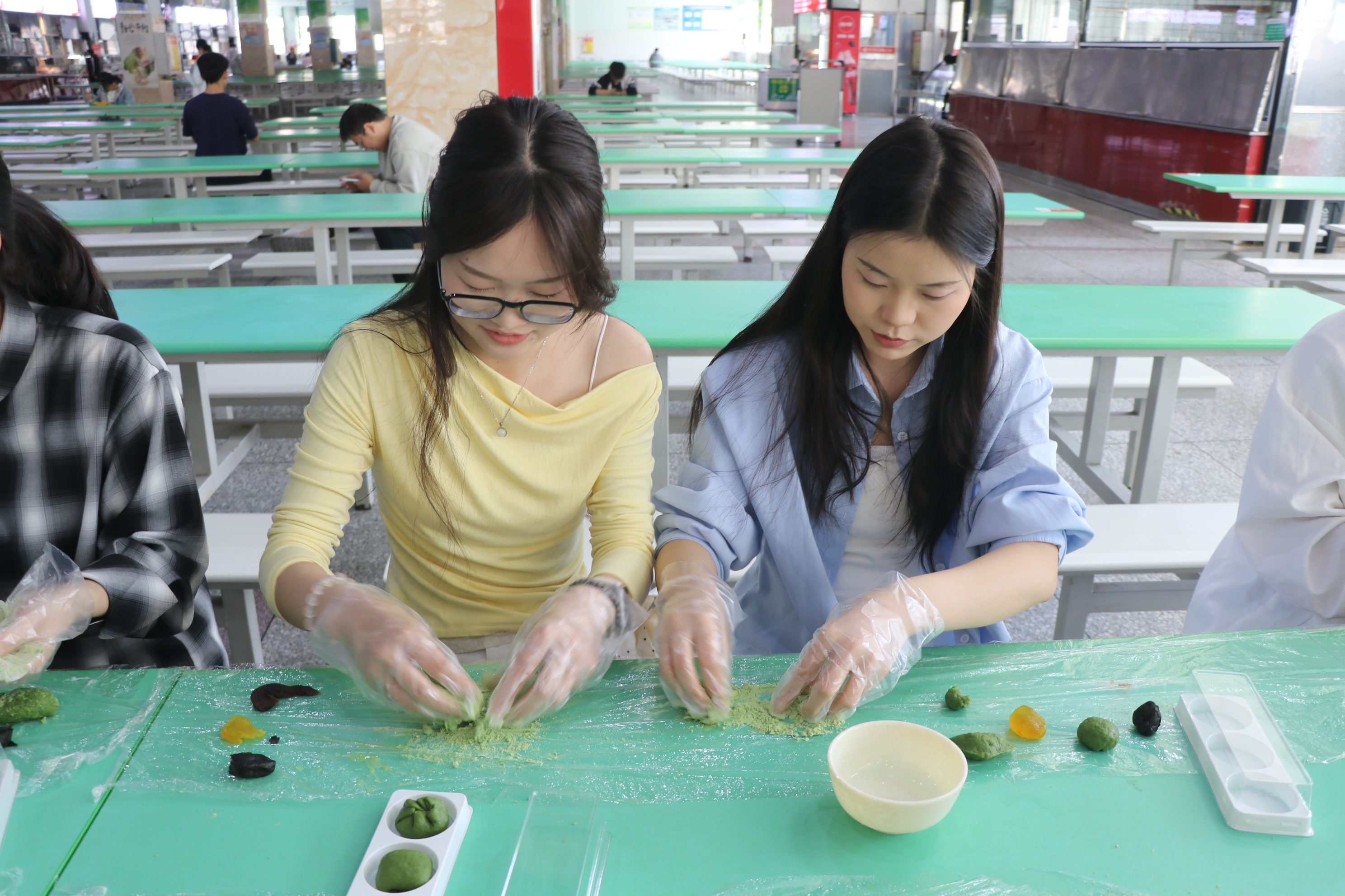 本次活动由校团委和后勤服务保障部联合主办,校学生会承办,在建设路和创新港校区同步开展。活动伊始,主持人围绕活动主题,从“寒食禁火”的经典典故,到“踏青插柳”的民间习俗,再到“青团祭祖”的传统仪式,将清明节的厚重底蕴与人文情怀娓娓道来,让大家在聆听中深刻感受“慎终追远、敦亲睦族”的精神内核,为后续环节奠定了深厚的文化基调。 随后,参与者在点心师傅的指导下开始制作青团,依次完成揉面、调馅、包制、成型等复杂工序。软糯的艾草糯米面皮包裹着豆沙、肉松、咸蛋黄等馅料,在每一个人的指尖下,制成色泽青绿、外形圆润的青团。活动尾声,同学们将制成的青团赠送给学校教师、后勤工作人员及同窗好友,以青团为媒传递感恩之意与春日温情。2025级历史学本科生王博岩表示:“此次活动让我领略到了中华文化的深厚底蕴,品尝了中华特色传统美食,和朋友们一起制作的过程也令我印象深刻”。