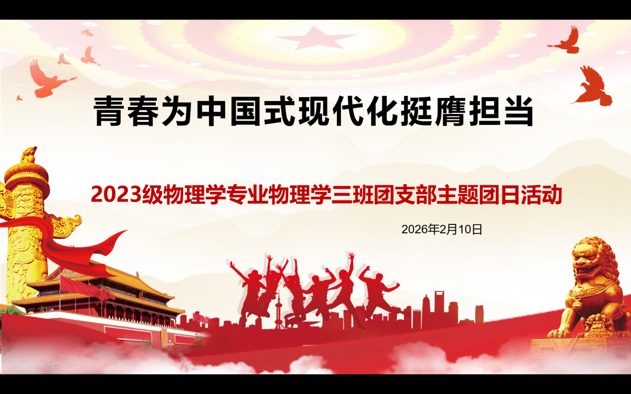 为引导广大团员青年立足个人所长,积极参与“我是师大代言人”招生宣传、“返家乡”社会实践、“向基层报到”基层实践等各类社会实践调研活动,并在实践过程中深入思考、及时总结。2023级物理学院物理学三班团支部于2月10日下午在线上开展了“青春为中国式现代化挺膺担当——社会实践话收获”主题团日活动。