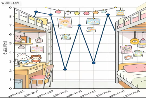 本次活动以宿舍为基本单元,创新启用“心情晴雨表”小程序开展线上打卡。平台设置了情绪状态选项与心情留言板块,宿舍成员每日记录个人情绪变化,通过文字分享当日学习生活中的点滴感悟与烦恼,并由宿舍成员轮流担任的“心情联络员”收集汇总全体成员的心情信息,形成每日宿舍情绪档案。活动期间,同学们主动分享日常、倾听同伴心声,在相互倾诉与鼓励中化解焦虑、增进理解。大家纷纷表示,这种轻量化的互动方式既保护了个人隐私,又为宿舍搭建了温暖的情感交流桥梁,有效密切了舍友间的情感联结,让宿舍成为真正的“心灵港湾”。