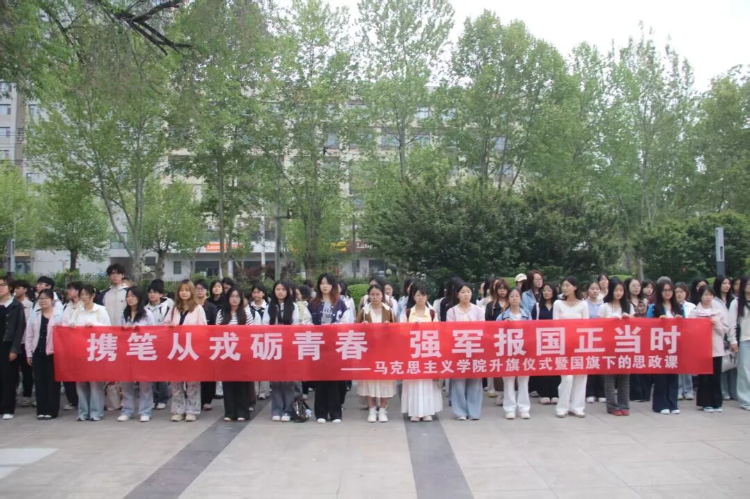 为积极响应国家的号召,进一步激发青年学子参军报国的热情,引导马院学子坚定理想信念,4月13日清晨,马克思主义学院在国旗广场举办升旗仪式暨国旗下的思政课。党委学工部副部长、学生中心副主任赵焕兴,党委学工部巴哈提亚尔·艾比布拉,党委学工部辅导员与学生发展中心副科长李笑研,马克思主义学院党委副书记滕梁莹、团委书记薄一凡,各年级辅导员老师以及2024级本科生、研究生共同参加了升旗仪式,仪式由薄一凡主持。