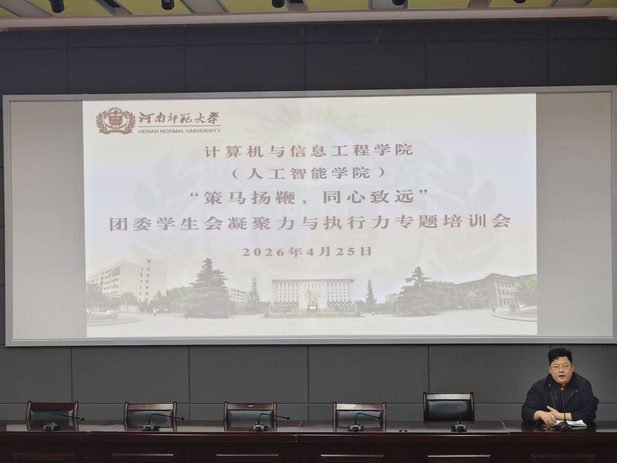 为进一步强化团委学生会组织建设,提升学生干部的凝聚力与执行力,明确工作方向,凝聚组织合力,4月25日,计算机与信息工程学院(人工智能学院)在217报告厅召开“策马扬鞭·同心致远”团委学生会凝聚力与执行力专题培训会。团委副书记魏继拓,全体团委学生会负责人共同参会。