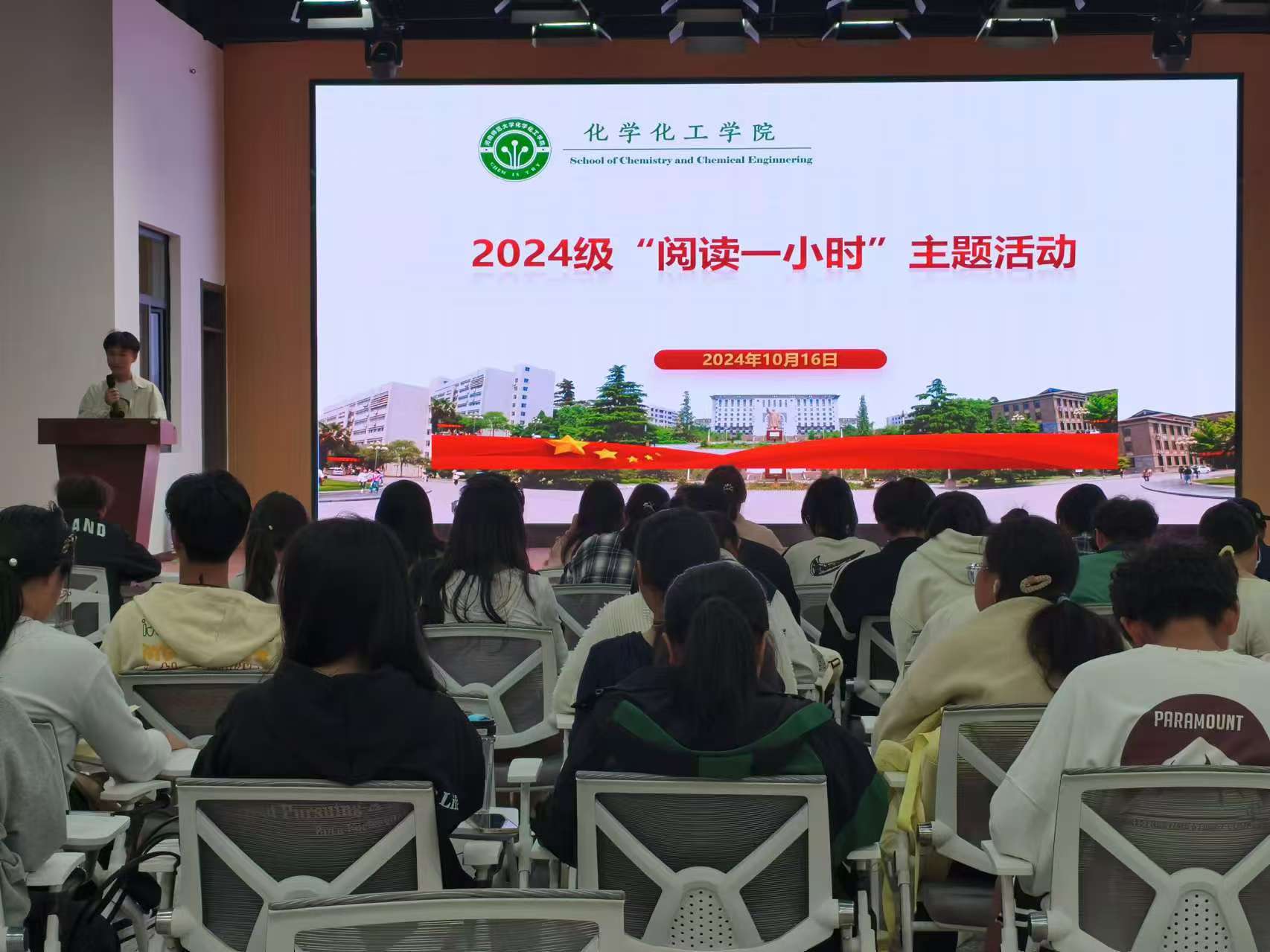 为提高学生的阅读兴趣,养成良好的阅读习惯,营造浓厚的阅读氛围,10月16日晚,化学化工院在万人餐厅三楼青年活动中心悦读吧开展“书香致远,墨卷质恒”读书活动。2024级辅导员罗睿睿、2024级化学一班和化学二班团支部共100余人参与本次活动。 活动伊始,罗睿睿首先明确本次活动的意义,强调阅读是获取知识和智慧的重要途径。活动期间,两名学生代表与同学们倾心交谈,分享自己的读书心得体会。化学一班杨金彪以“你是否对未知充满好奇?”发问,引出他分享的书籍《梅花易数》,从不同的立场、角度,带领同学们从日常生活的点滴中感悟世间差异的实质。“诗意漫步,经典为伴”,化学二班戴昱蓥推荐了《新中国文学经典丛书》,激励同学们在新的历史时期继续发扬伟大的民族精神,为实现中华民族伟大复兴的中国梦而努力奋斗。阅读分享后,同学们徜徉于书海之中,感受知识的力量,探索未知的世界,体验别样的人生。 此次读书活动为学生们搭建了一个阅读分享的平台,有利于学生提升个人文化素养和知识储备。同学们纷纷表示,通过此次读书活动分享读书心得,交流阅读经验,从而更加坚定了未来自身的发展方向与奋斗目标。 (化学化工学院 陈洁 责任编辑 何春阳) |