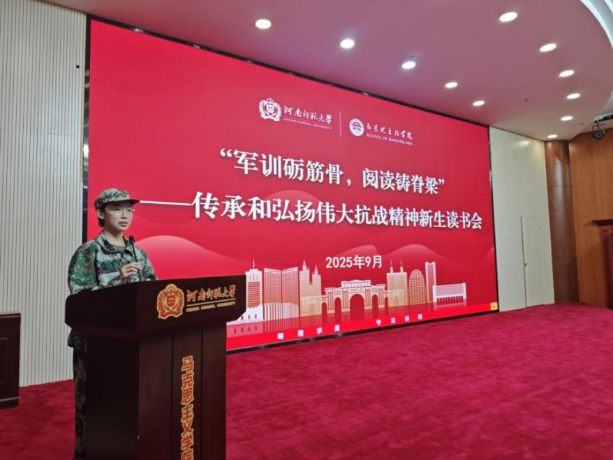 9月18日晚,马克思主义学院“军训砺筋骨,阅读铸脊梁”——传承和弘扬伟大抗战精神新生读书会在东区思政平台举办。本次活动由2025级本科生辅导员尹康主持,全体新生共同参与,在书香与迷彩交织的氛围中,完成了一堂别开生面的“信仰加训”。 “中国人民抗日战争是艰苦卓绝的伟大战争。……”崔雨涵同学庄重而清晰的声音回荡在整个会场,她领读的是“习近平总书记在纪念中国人民抗日战争暨世界反法西斯战争胜利80周年大会上的讲话”。总书记的重要讲话鼓舞人心,催人奋进,该同学的领读一字一句,铿锵入心。随后,姚予悦同学接力朗读《反对自由主义》。台下同学们屏息凝神,不少人悄悄翻开手中的书页,目光随文字流转,仿佛跟随着声音穿越回那个风雨如磐却信念如钢的年代。 在感悟分享环节,赵雅旭同学结合《论持久战》的学习畅谈体会。她表示,深刻体会到在民族存亡关头中国共产党人所展现出的战略远见和顽强意志,“作为新时代大学生,在面对困难时不应有畏难心理,要发扬迎难而上、持久奋斗的精神,坚定信念、勇毅前行。”会场中不时响起阵阵掌声,有同学低头匆匆记录心得,也有同学在听到动情处不禁点头赞同。尹康在最后总结中鼓励大家:“愿你们从这些文字中学会迎难而上,在集体中彼此照亮,让读经典、悟原理成为你们大学四年最珍贵的方法与习惯。” 活动在暖黄色的灯光中落下帷幕。这不仅仅是一场读书会,更是一次精神的淬炼和成长的启程。迷彩与阅读相遇,碰撞出的是属于2025级新生的信念之火与青春之光,为即将开启的大学生涯铸就了坚实的精神脊梁。 (马克思主义学院 尹 康 责任编辑 傅雨晴) |