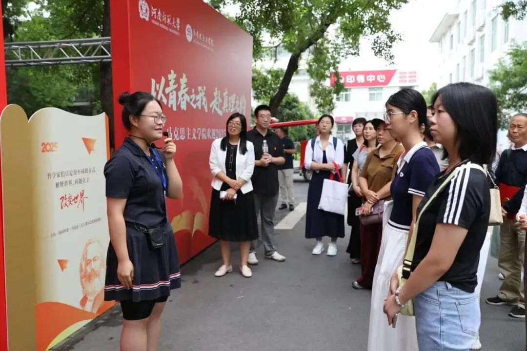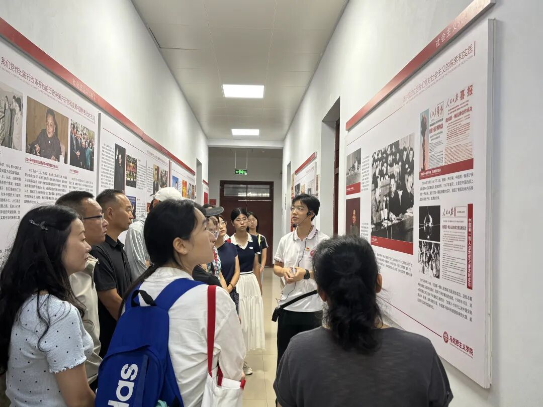 9月6日,一场关于真理与信仰的“迎新思政课”在马克思主义学院平原楼拉开帷幕。新生与家长在讲解员的引领下,以“真理之门”为起点,途经社会主义五百年历程的时光长廊,直至庄严肃穆的马克思雕像,通过触摸、聆听、驻足、发问,让信仰如微风细雨般无声浸润、落地生根。 平原楼前,徐徐展开的“真理之门”,引导着新生步入真理探索的殿堂。右侧泛黄的“书页”上马克思那句振聋发聩的“哲学家们只是用不同的方式解释世界,问题在于改变世界。”更让新生懂得了,学习马克思主义,不仅要读懂“为什么”的理论逻辑,更要践行“怎么做”的实践品格。 走进马克思主义学院办公楼《社会主义五百年》文化墙:从莫尔“乌托邦”的理想、圣西门和傅立叶的空想探索,到《共产党宣言》的诞生、十月革命送来马克思列宁主义,再到中国特色社会主义道路与新时代伟大变革。当听到“中华民族伟大复兴进入不可逆转的历史进程”时,在场新生纷纷鼓掌,那是认同,是感动,更是一种决心。 从特里尔小城的青年理想,到《共产党宣言》的振聋发聩;从流亡岁月中的笔耕不辍,到“为人类解放而斗争”的毕生追求。学院马克思雕像前,同学们拿出笔记本认真记录,马克思“在科学上没有平坦的大道,只有不畏劳苦沿着陡峭山路攀登的人,才有希望达到光辉的顶点”的名言,被一笔一画写在扉页,那一刻,马院青年与伟人之间,有了“信仰之桥”。 这堂特殊的迎新课,不仅让新生读懂了马克思主义学院的历史传承,更让他们在行走中触摸真理温度、在聆听中坚定理想方向。2025级马克思主义理论类专业的刘永章表示:“这堂课让我深刻明白了,马克思主义不是抽象的理论,而是指引人生的灯塔。”未来,年轻的“马院人”将带着这堂“信仰第一课”的收获走向更远的地方,在学术探索与实践奋斗中,让青春在为祖国、为人民的奉献中绽放绚丽之花。 (马克思主义学院 薄一凡 杨晨熙 责任编辑 魏 莱) |