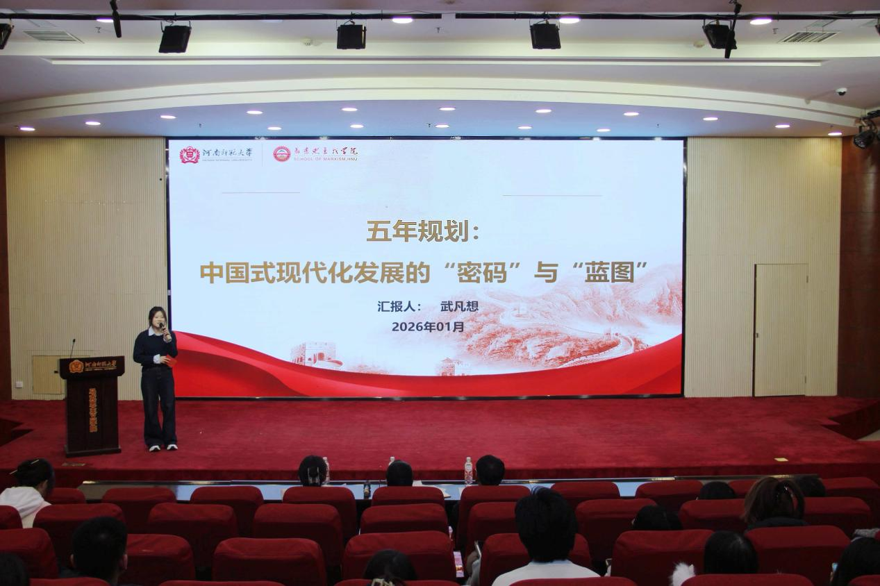 王宁从党的二十届历次全会精神引入,重点阐述了党的二十届四中全会的重大意义和审议通过的《中共中央关于制定国民经济和社会发展第十五个五年规划的建议》的核心内涵,深入解读了“十四五”时期我国发展取得的重大成就,分析了全会召开的历史方位,系统解读了全会精神和“十五五”时期经济社会发展的指导思想、重大原则、主要目标、战略任务和重大举措。他表示,全体师生要把学习贯彻全会精神同学习领会习近平新时代中国特色社会主义思想贯通起来,准确把握“十五五”时期的重要地位,切实把思想和行动统一到党中央决策部署上来,自觉将个人成长发展融入时代发展和强国建设、民族复兴伟业,坚定理想信念、努力学习科学知识、锤炼过硬本领,实现个人理想与时代使命的同频共振。