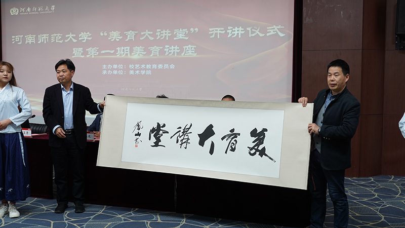 随后,刘凤山为美育大讲堂题赠墨宝,并与刘玉芳共同打开。