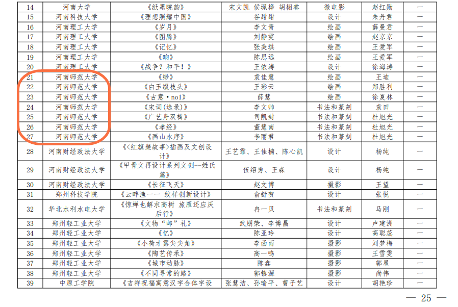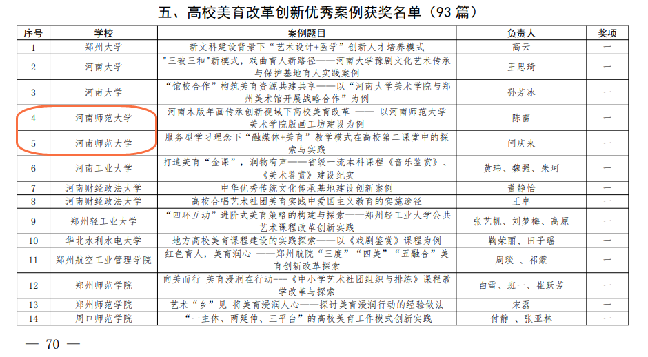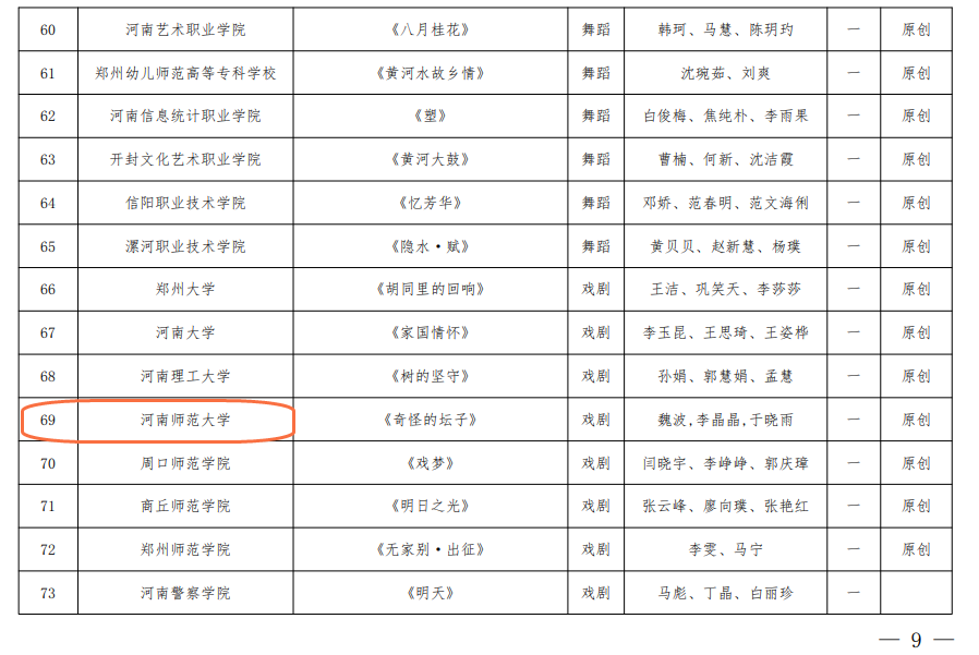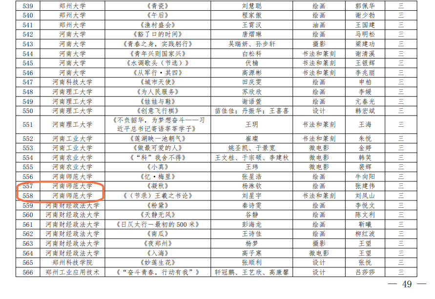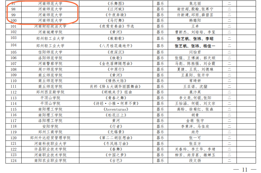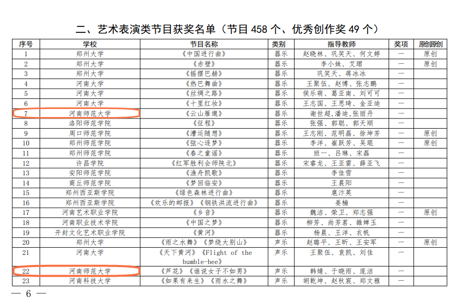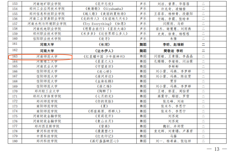 在河南省第七届大学生艺术展演活动中,获一等奖13项、二等奖12项、三等奖3项。学校荣获优秀组织奖。