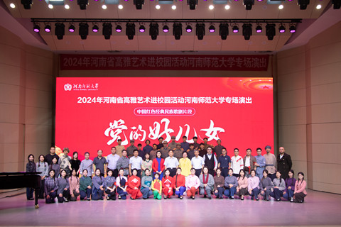 6月22日晚,由河南省教育厅、河南省文化和旅游厅主办、河南师范大学承办的2024年河南省“高雅艺术进校园”河南师范大学红色歌剧《党的好儿女》专场演出在我校音乐厅举行。校党委常委、纪委书记、监察专员王玉良出席活动并致辞。著名女高音歌唱家、国家一级演员刘燕,校党委宣传部、党委学工部、教务处、艺术教育委员会办公室、校团委等职能部门负责人及现场400余名师生观看了演出。