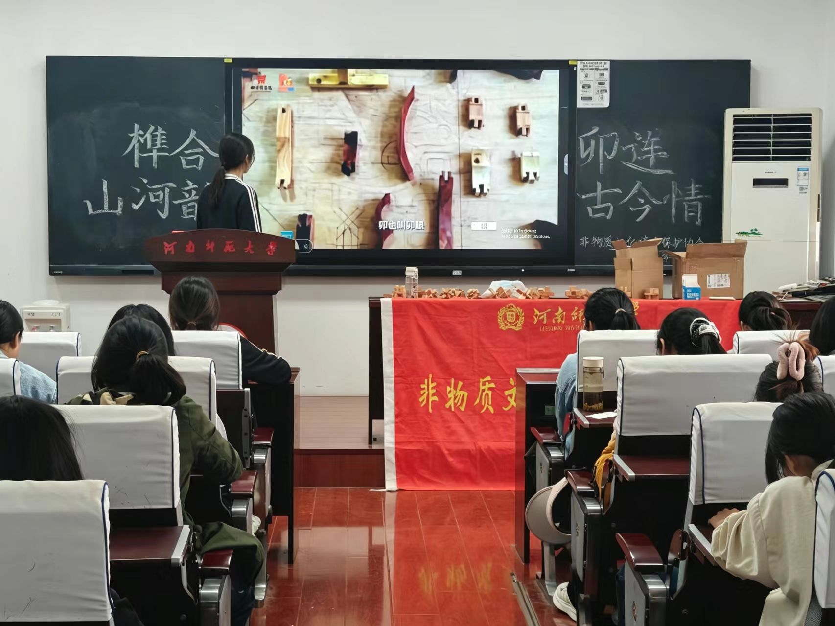 榫合山河古韵,卯连千年匠心。为传承中华造物智慧,让传统手工技艺滋养校园美育沃土,由河南师范大学艺术教育委员会办公室主办、非物质文化遗产保护协会承办的“与美同行”校园系列活动之榫卯非遗体验课,于4月12日晚在文学院506教室圆满落幕。